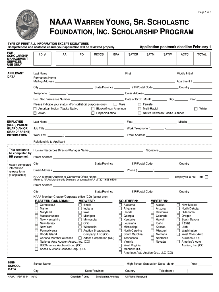Get the free naaa warren young, sr. scholastic foundation, inc. scholarship program