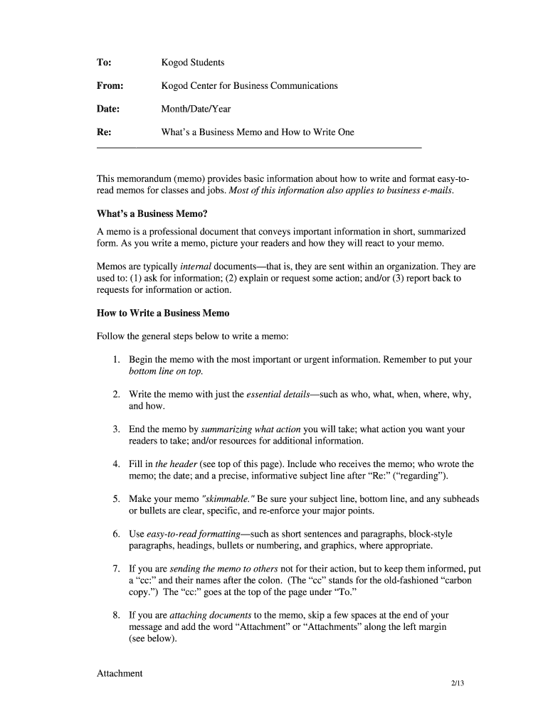 To:Good StudentsFrom:Good Center for Business CommunicationsDate:Month/Date/Pierre: What's a Business Memo and How to Write One This memorandum (memo) provides basic information about how to write