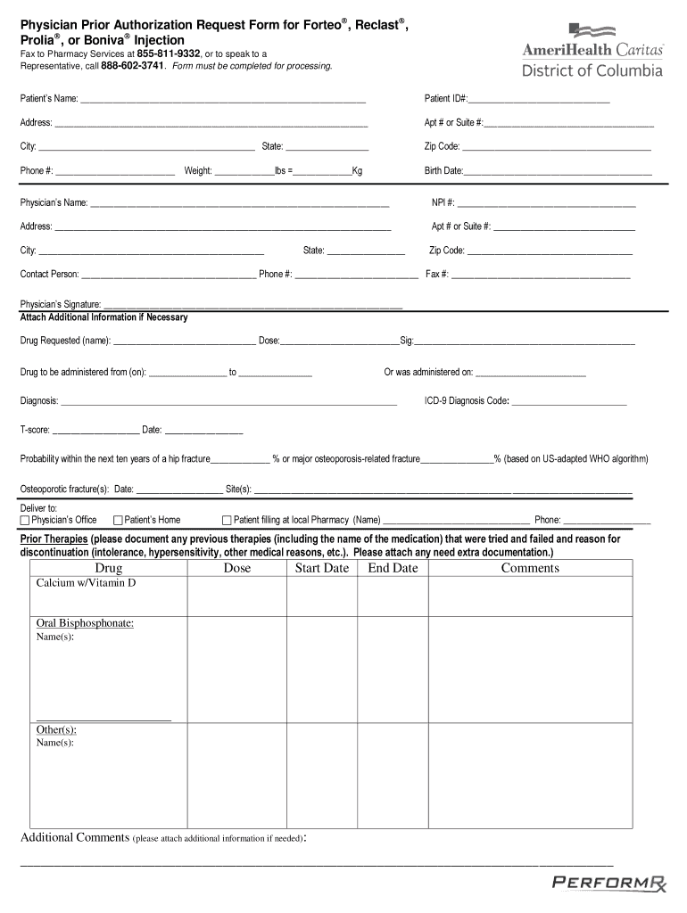 Get the free Request Form for Forteo, Reclast, Prolia, or Boniva Injection - Providers - AmeriHea...