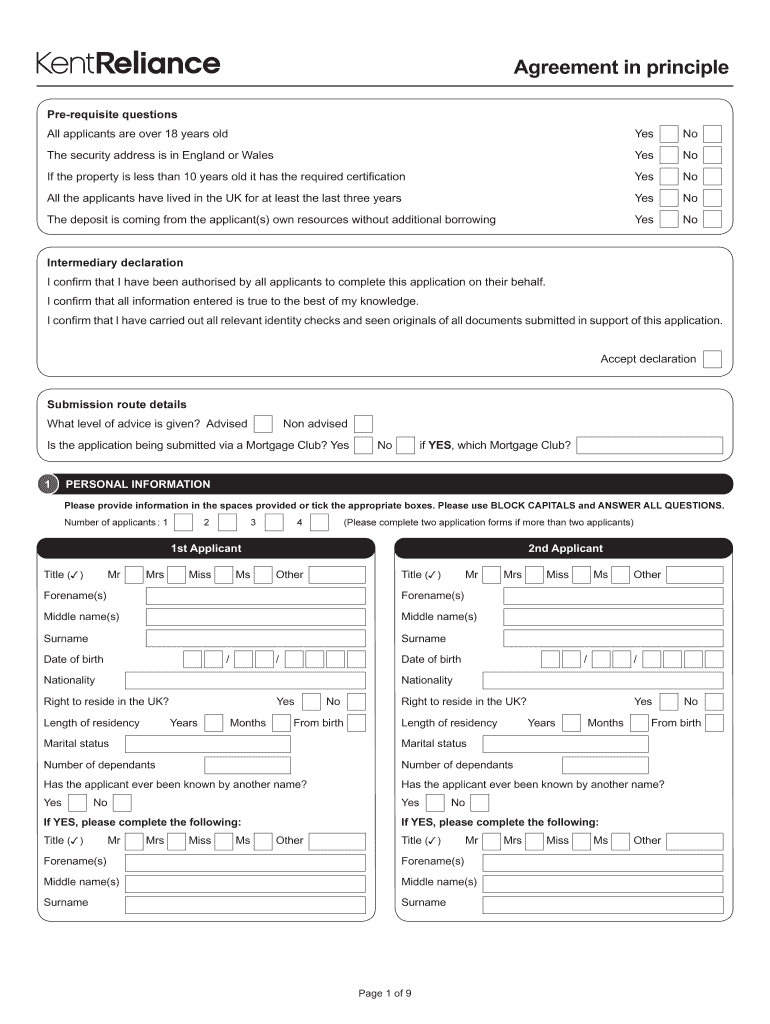 Agreement in principle Prerequisite questions All applicants are over 18 years old Yes No The security address is in England or Wales Yes No If the property is less than 10 years old it has the required