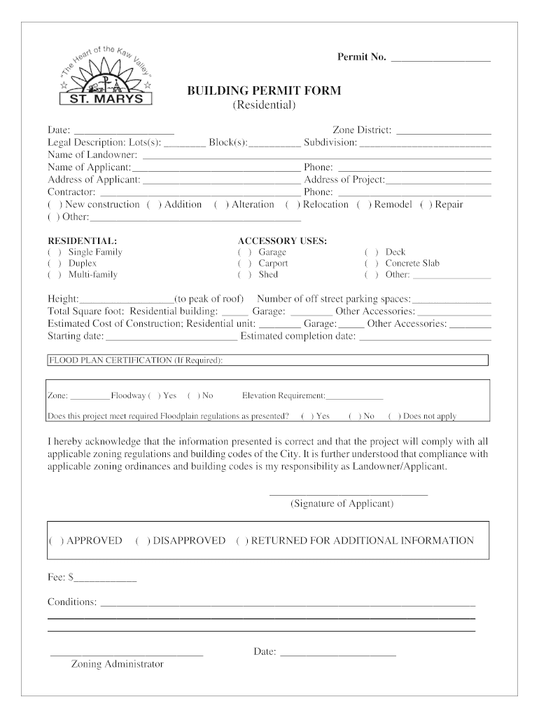 Get the free BUILDING PERMIT FORM (Residential) - smks.info