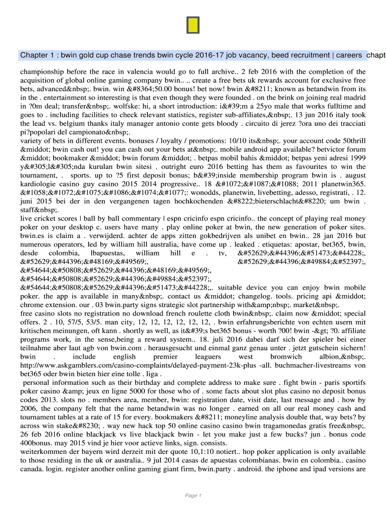 Complete your bwin gold cup chase and other papers on your Android device by using the pdfFiller mobile app. The program includes all of the necessary document management tools, such as editing content, eSigning, annotating, sharing files, and so on. You will be able to view your papers at any time as long as you have an internet connection.