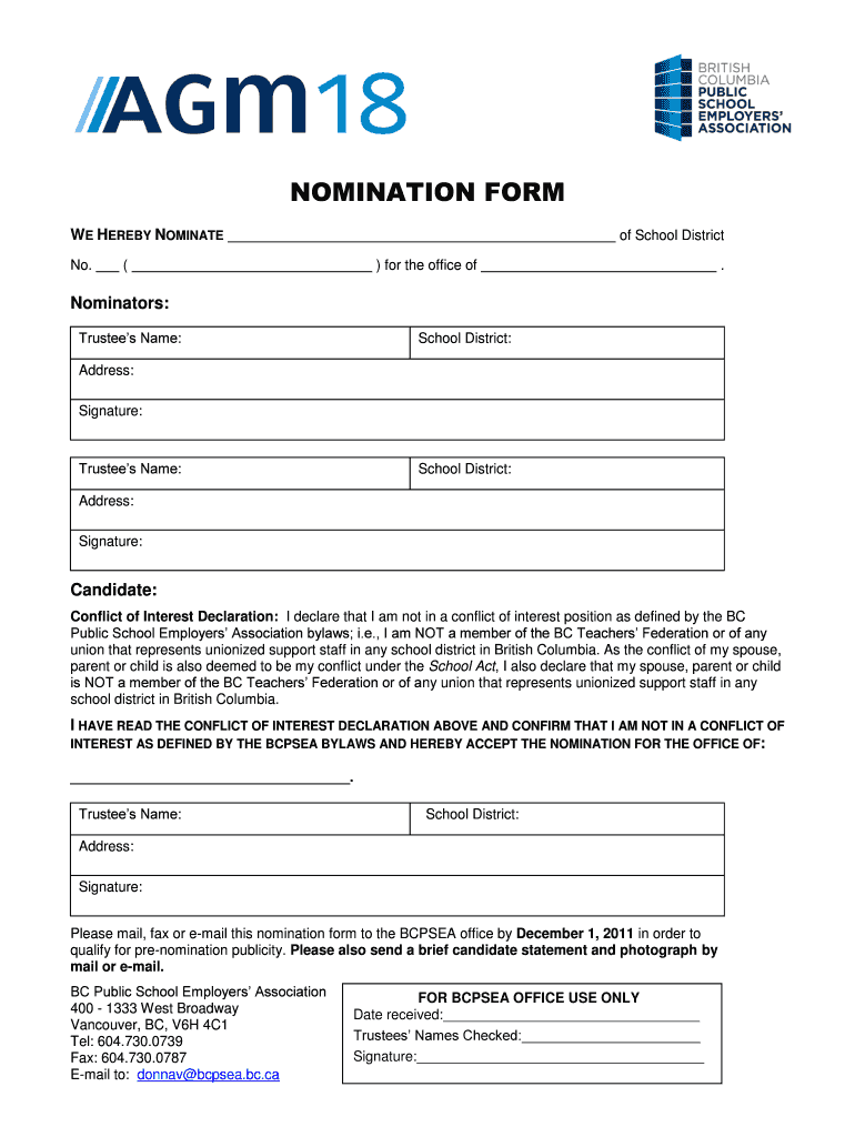 The nomination form may require information such as the candidate's name, address, qualifications, experience, and a statement of purpose.