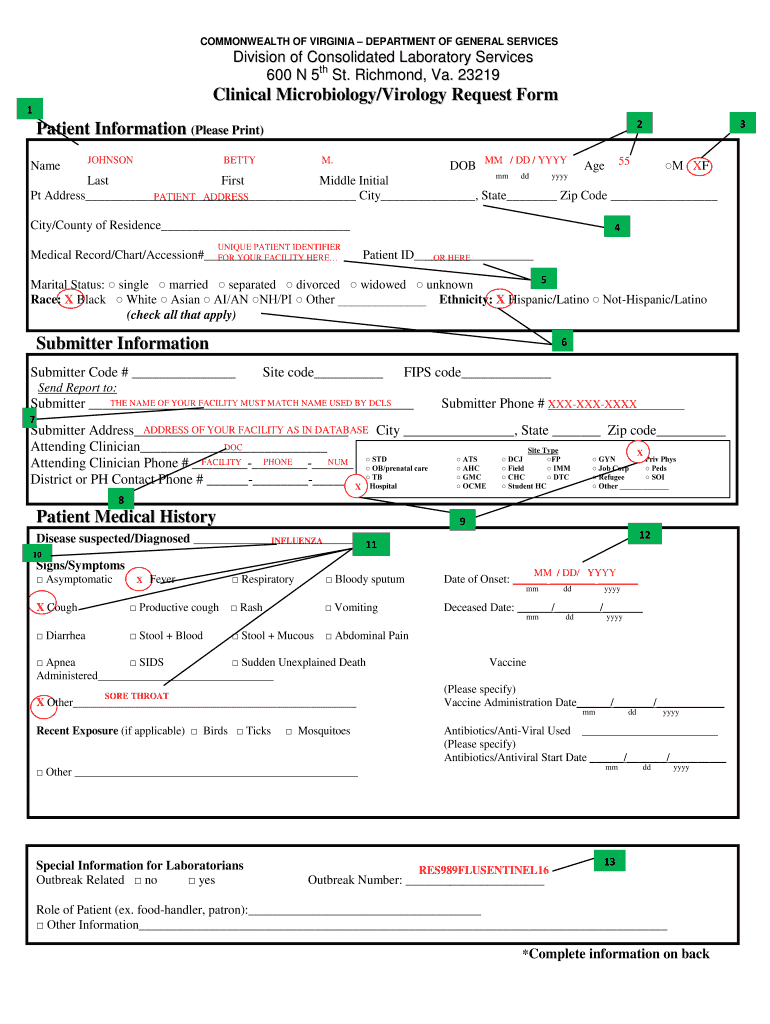 Get the free Division of Consolidated Laboratory Services - vdh virginia