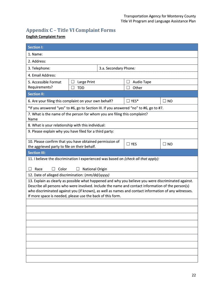 Get the free Title VI Program and Language Assistance Plan - Transportation ... - tamcmonterey