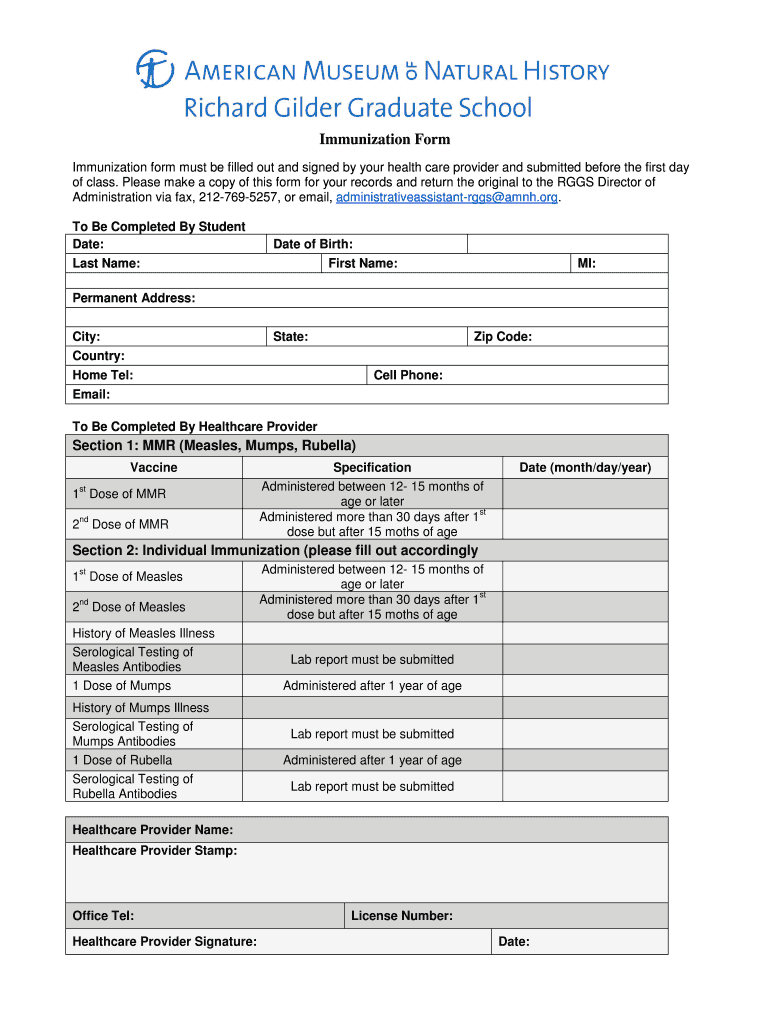 Get the free New York State Post-Secondary Health Requirement - amnh