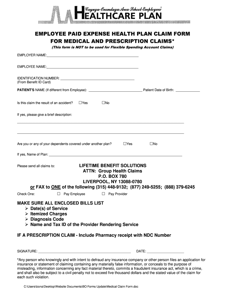 Get the free EMPLOYEE PAID EXPENSE HEALTH PLAN CLAIM FORM - cayboces