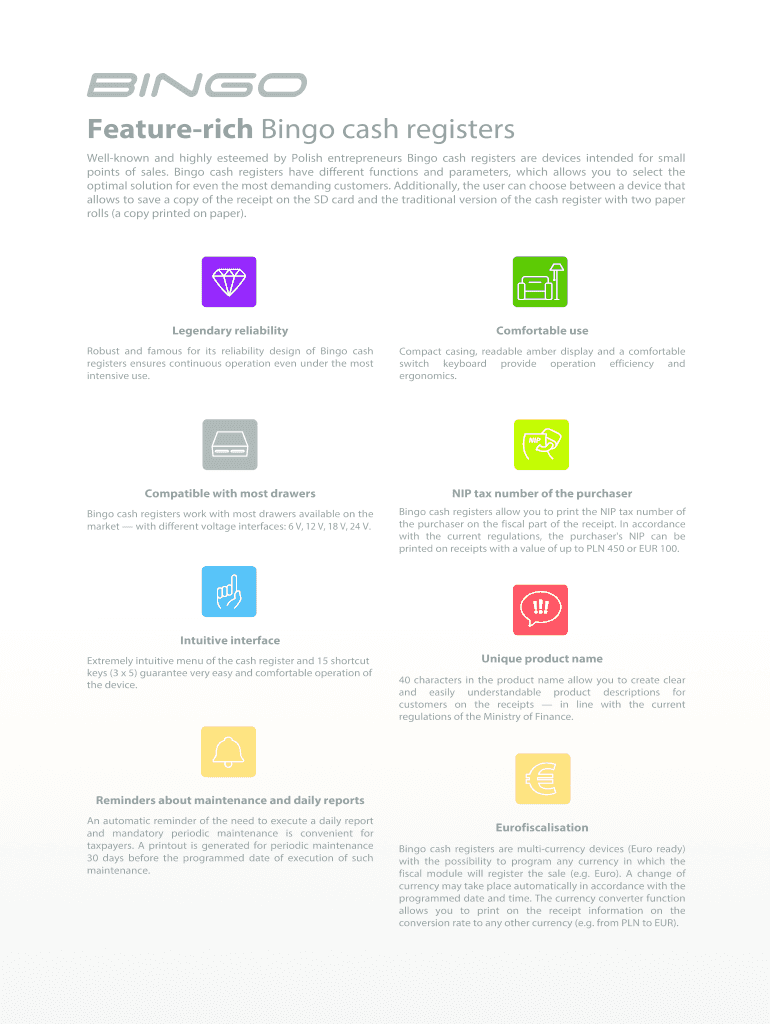 Well-known and highly esteemed by Polish entrepreneurs Bingo cash registers are devices intended for small