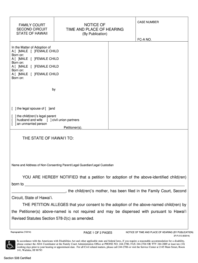 Get the free Notice Publication - Hawaii State Judiciary - courts state hi