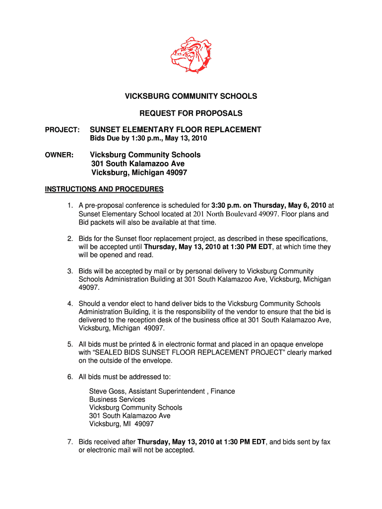 Get the free VICKSBURG COMMUNITY SCHOOLS REQUEST FOR - michigan