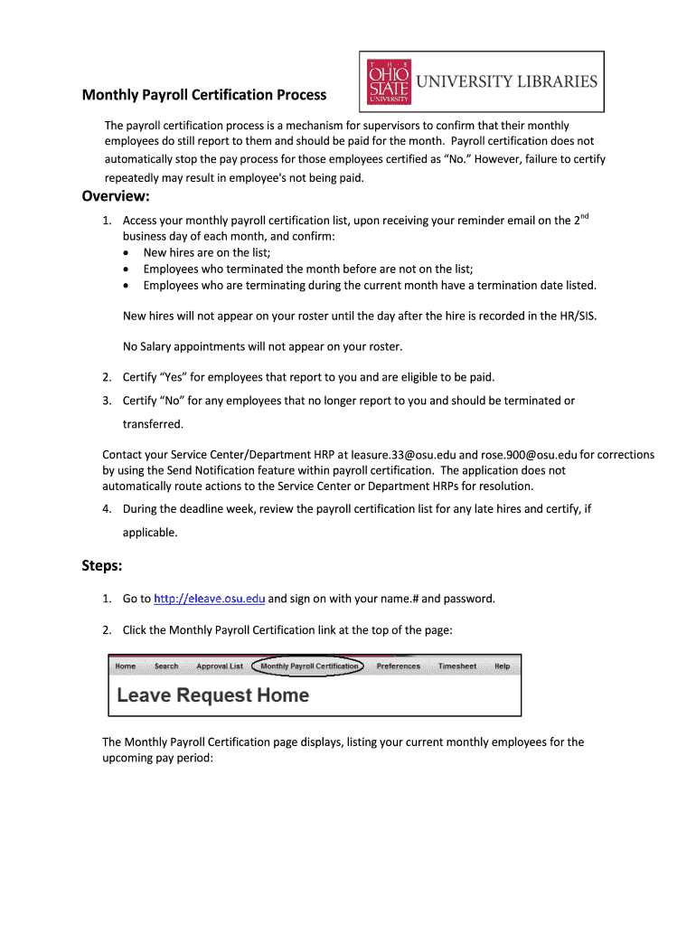 The monthly payroll certification process is necessary for any organization that has employees and pays them on a regular basis. It ensures that the company is compliant with all legal requirements, accurately calculates employee earnings, and maintains thorough records of payroll transactions. This process is crucial for businesses of all sizes and in various industries, including small businesses, corporations, non-profit organizations, and government entities.