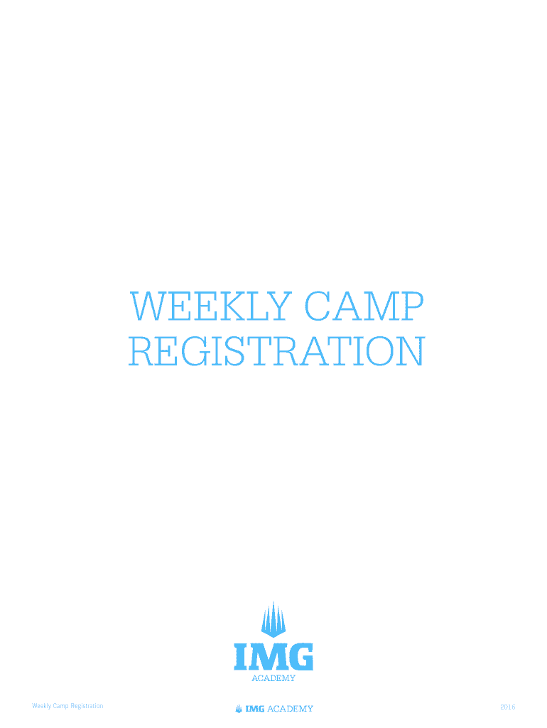 WEEKLY CAMP REGISTRATION Weekly Camp Registration 2016 WELCOME LETTER Greetings from IMG Academy, Thank you for your interest in IMG Academy, the world leader in integrated academics, athletics and