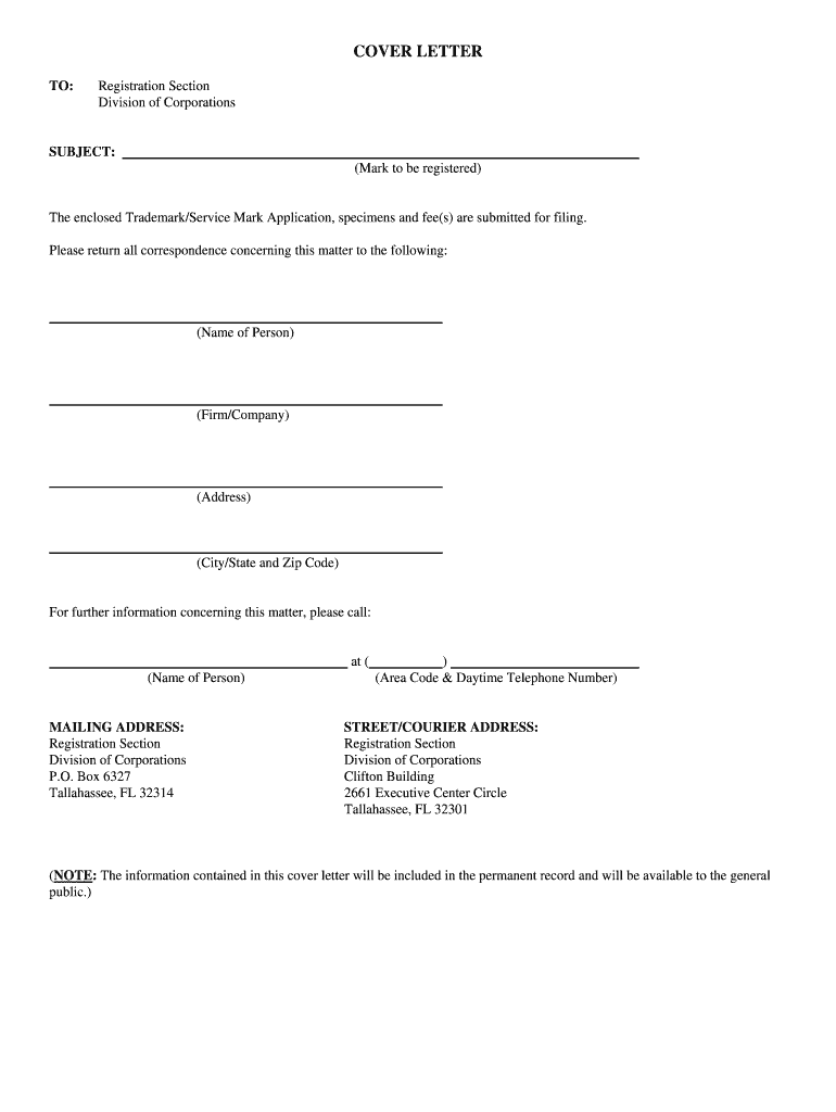 Service Mark Registration application completed in its entirety, three specimens and a check made payable to the Florida Department of ... Signature Portion ...