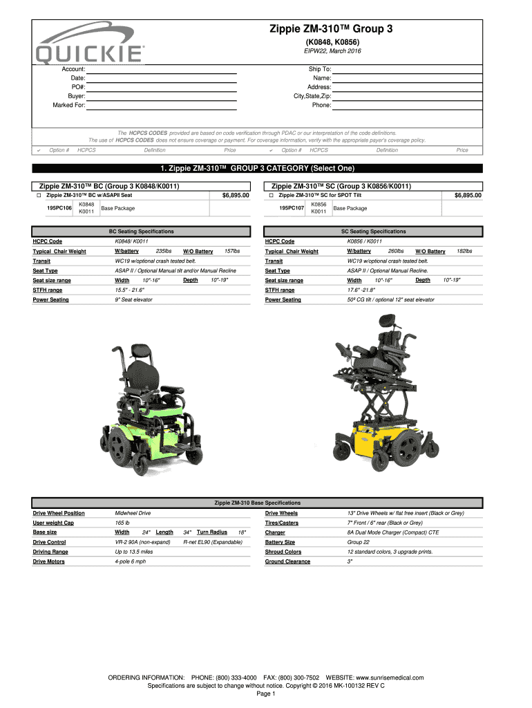 Get the free Zippie? ZM-310 Order Form - Sunrise Medical