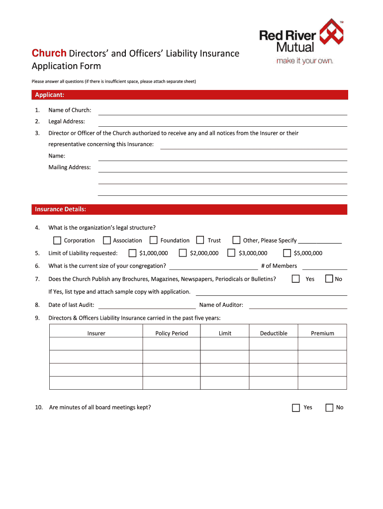 Get the free Church Directors' and Officers' Liability Insurance Application Form
