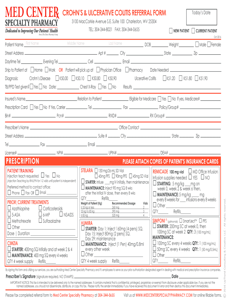 Get the free NEW PATIENT CURRENT PATIENT - medcenterspecialtypharmacy.com