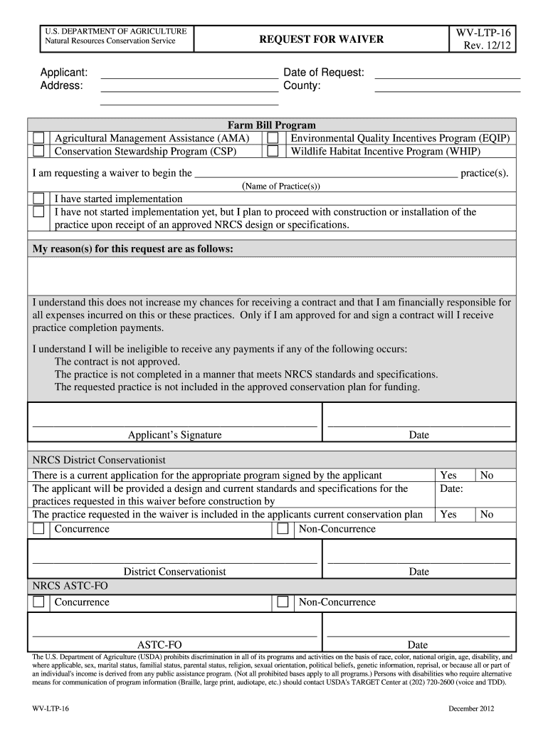 Get the free USDA Waiver Request Form WV-LTP-16