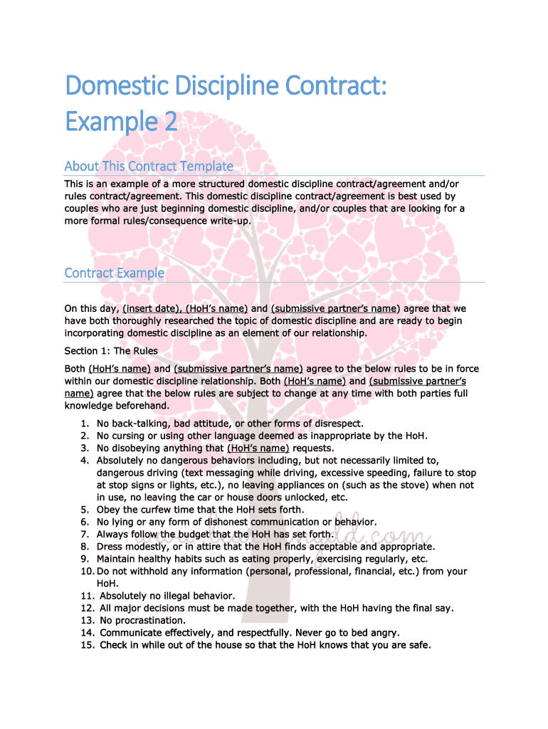 This is an example of a more structured domestic discipline contract/agreement and/or