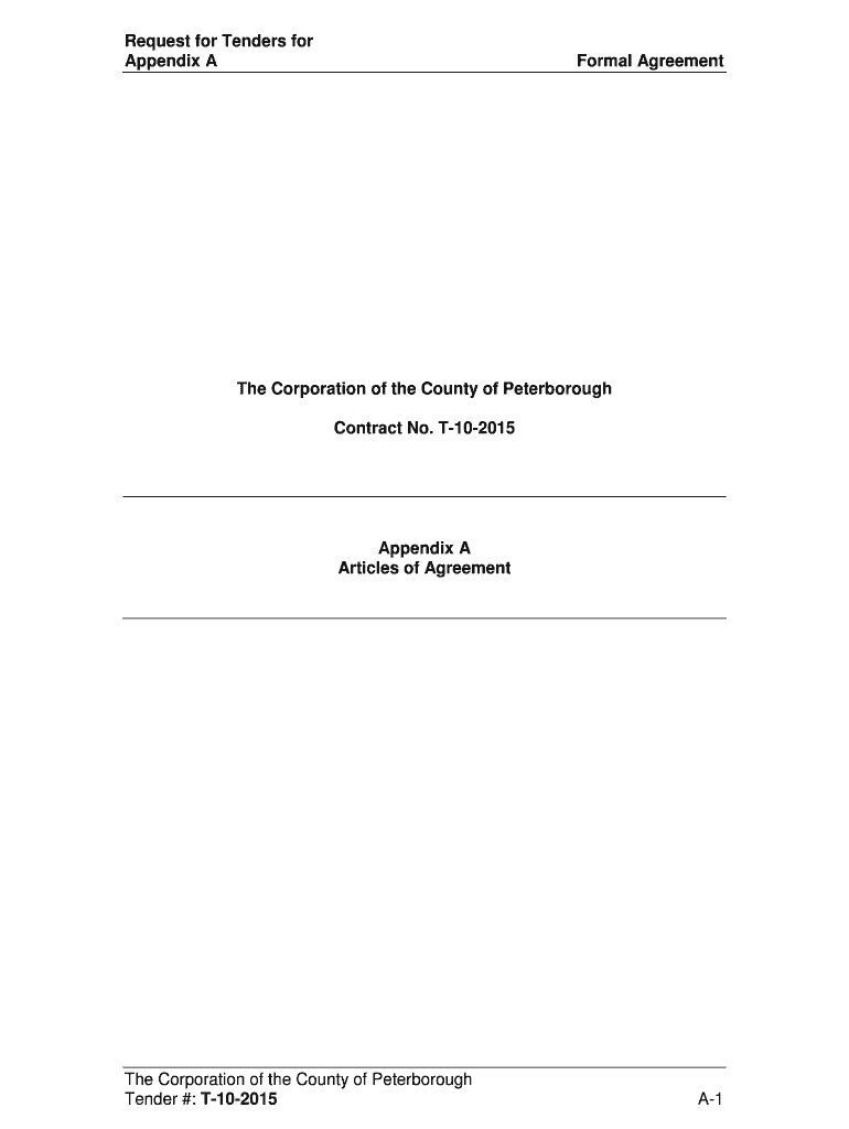 Request for Tenders for Appendix A Formal Agreement The Corporation of the County of Peterborough Contract No. T102015 Appendix A Articles of Agreement The Corporation of the County of Peterborough