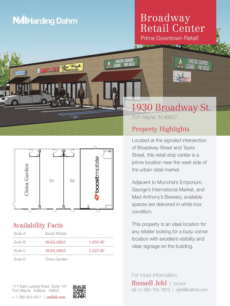 Broadway Retail Center Prime Downtown Retail! 1930 Broadway St. Fort Wayne IN 46807 China Garden Property Highlights SUITE D 1,525 SF Located at the signaled intersection of Broadway Street and Taylor