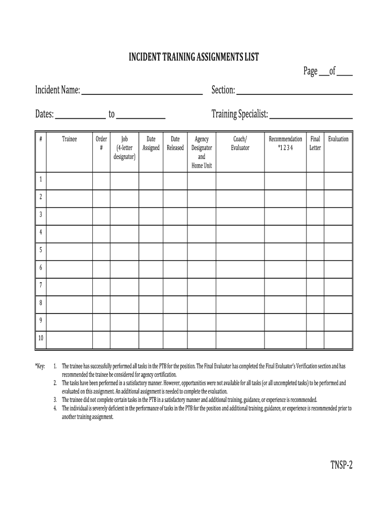 Get the free TRAINING ASSIGNMENTS LIST - nwcg