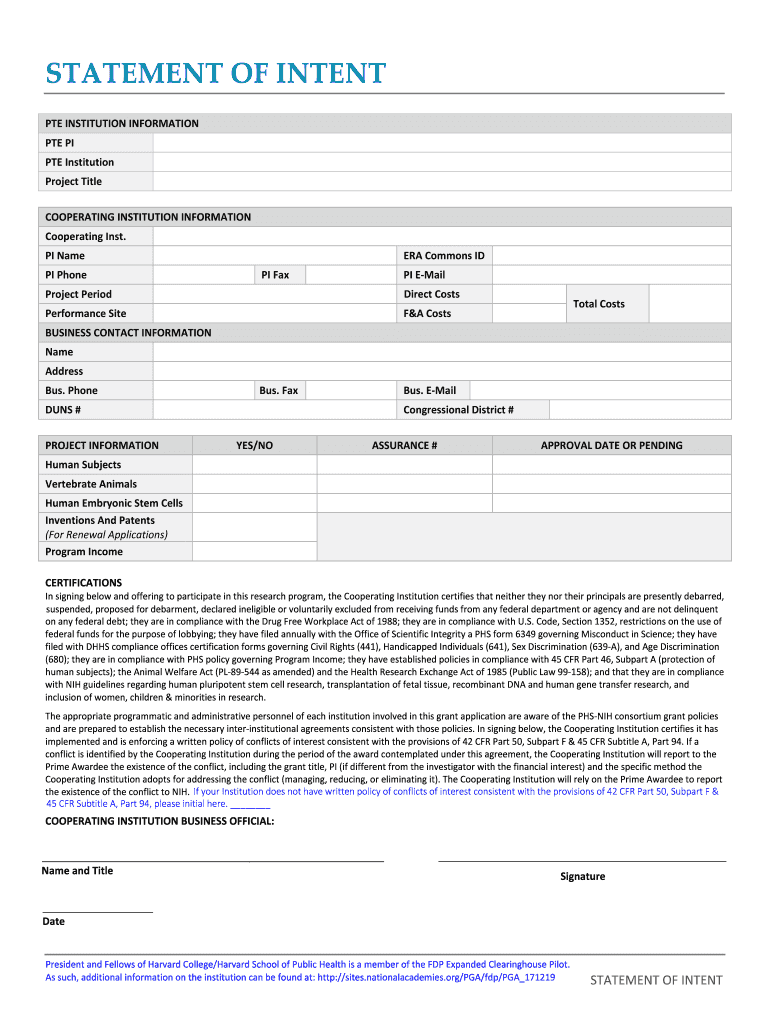 Get the free Statement of Intent - hlcra.harvard.edu