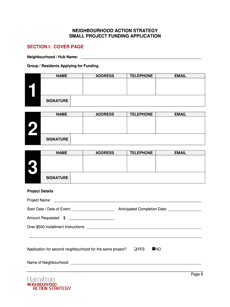 Get the free NEIGHBOURHOOD ACTION STRATEGY SMALL PROJECT - sprc hamilton on