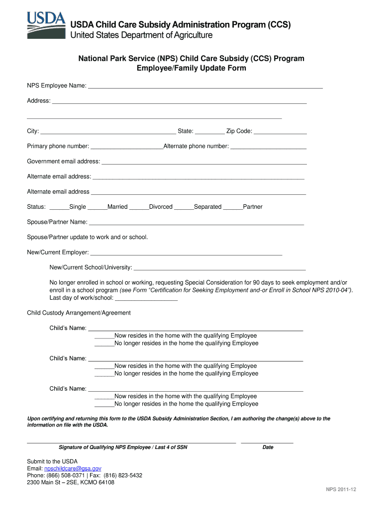 Get the free National Park Service (NPS) Child Care Subsidy (CCS) Program Employee/Family Update ...