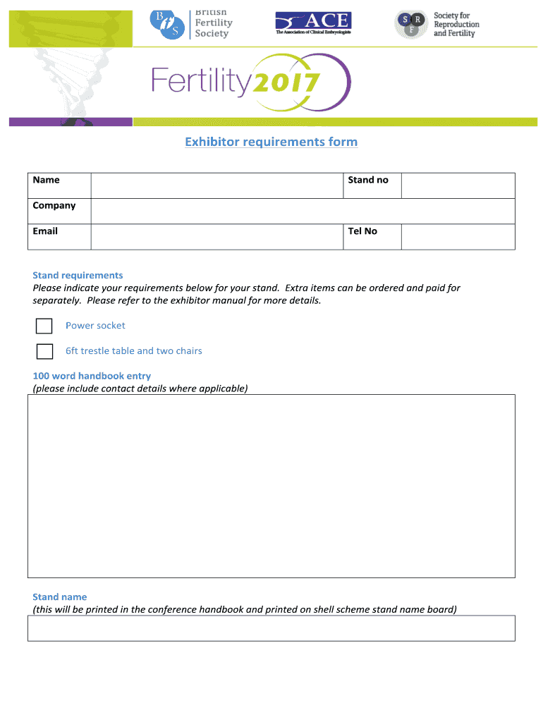 Get the free Fertility 2017 Exhibitor requirements form - fertilityconference