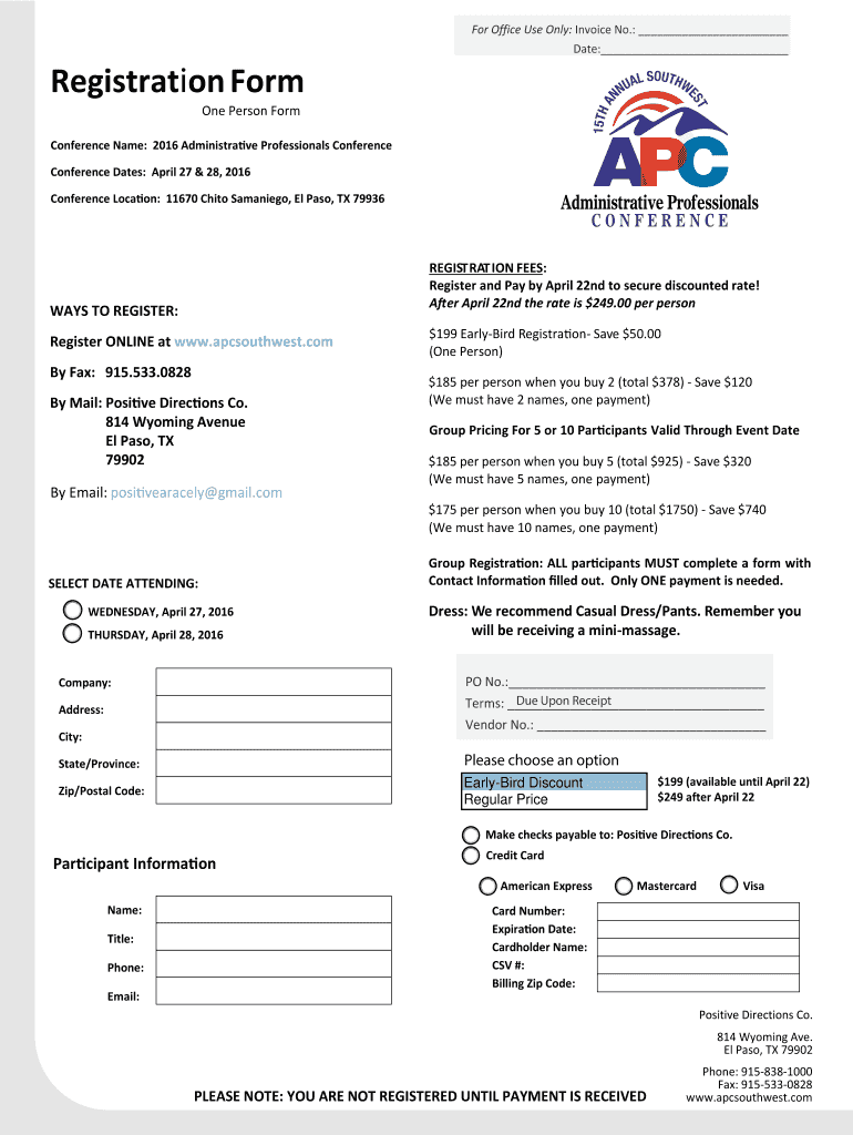 Get the free Participant Registration Form APC 2016 1 person. Adobe Designer Template