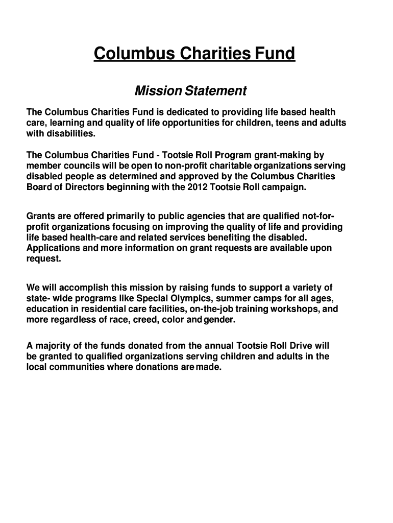 To fill out the Columbus Charities Fund, organizations or individuals must provide detailed information about their fundraising activities and how the donated funds will be used for charitable purposes.