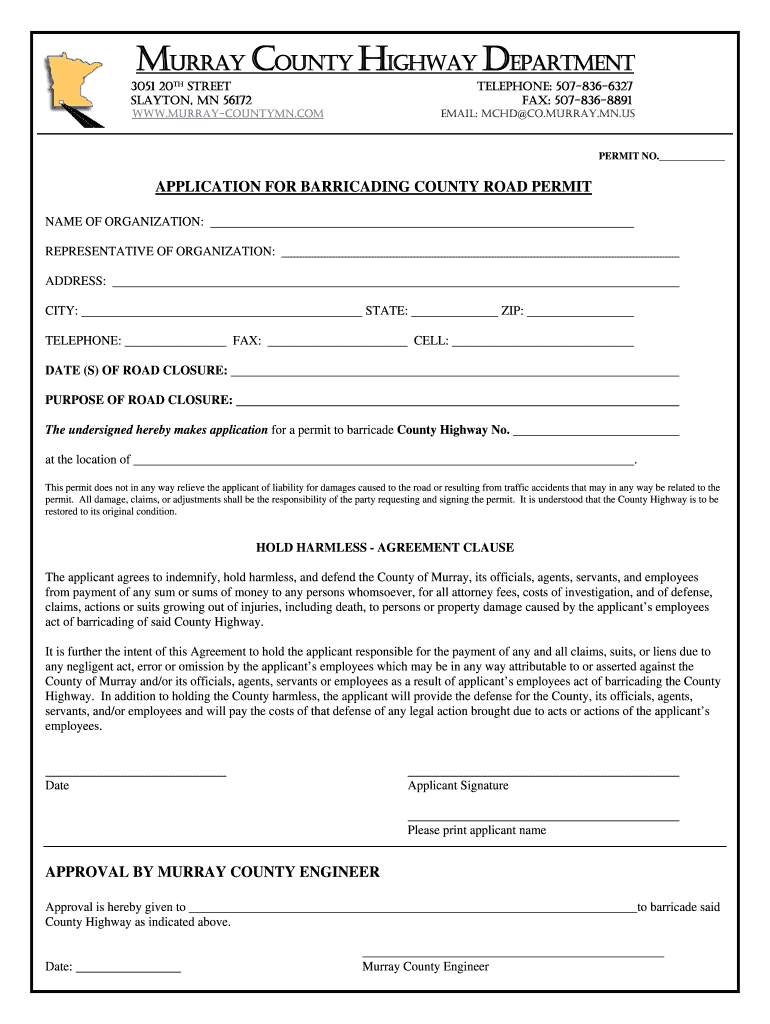 County or municipal authorities responsible for maintaining and managing county roads may also need a barricade county road permitdoc to document and regulate any activities or events that involve the placement of barricades.