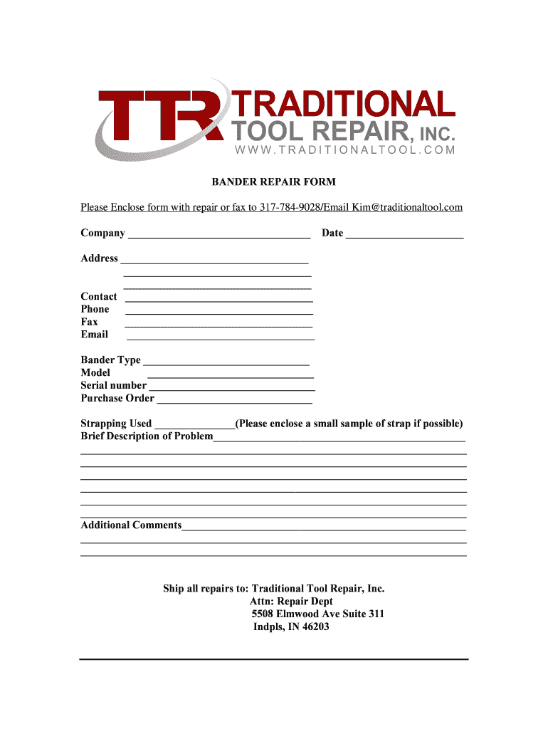 Get the free BANDER REPAIR FORM Please Enclose form with repair or fax to ... - traditionaltoolre...