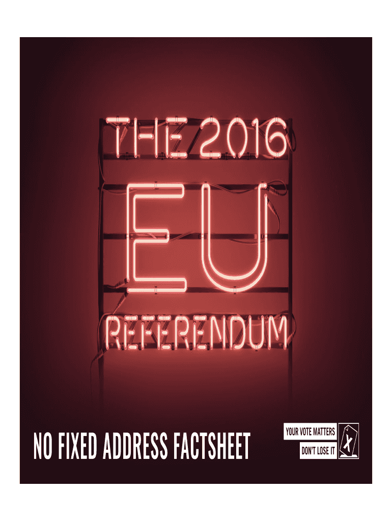 NO FIXED ADDRESS FACTSET REGISTERING TO VOTE FOR THE 2016 EU REFERENDUM no fixed address The purpose of this fact sheet is to provide information for anyone helping people who don't have a permanent