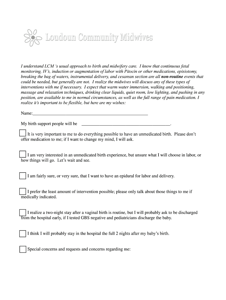 Get the free I understand LCM s usual approach to birth and midwifery care