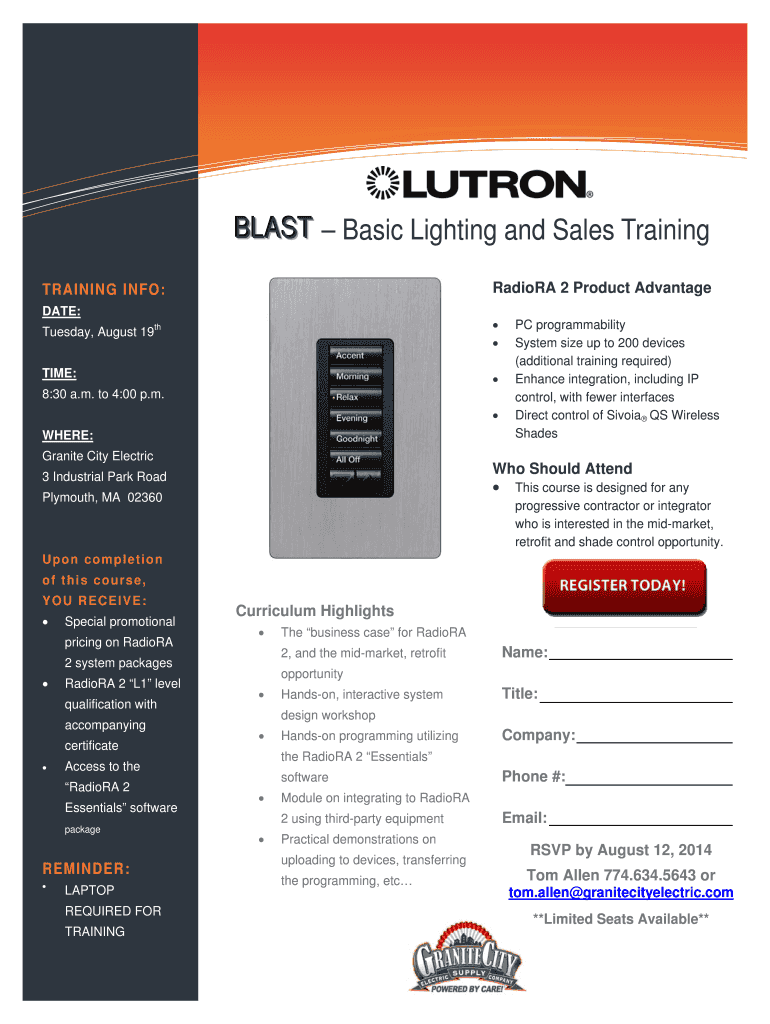 Name: Title: Company: Phone #: Email: TRAINING INFO: DATE: Tuesday, August 19th ... Microsoft Word — RadioRA2Training_August 19, 2014.docx Author: Hillary.