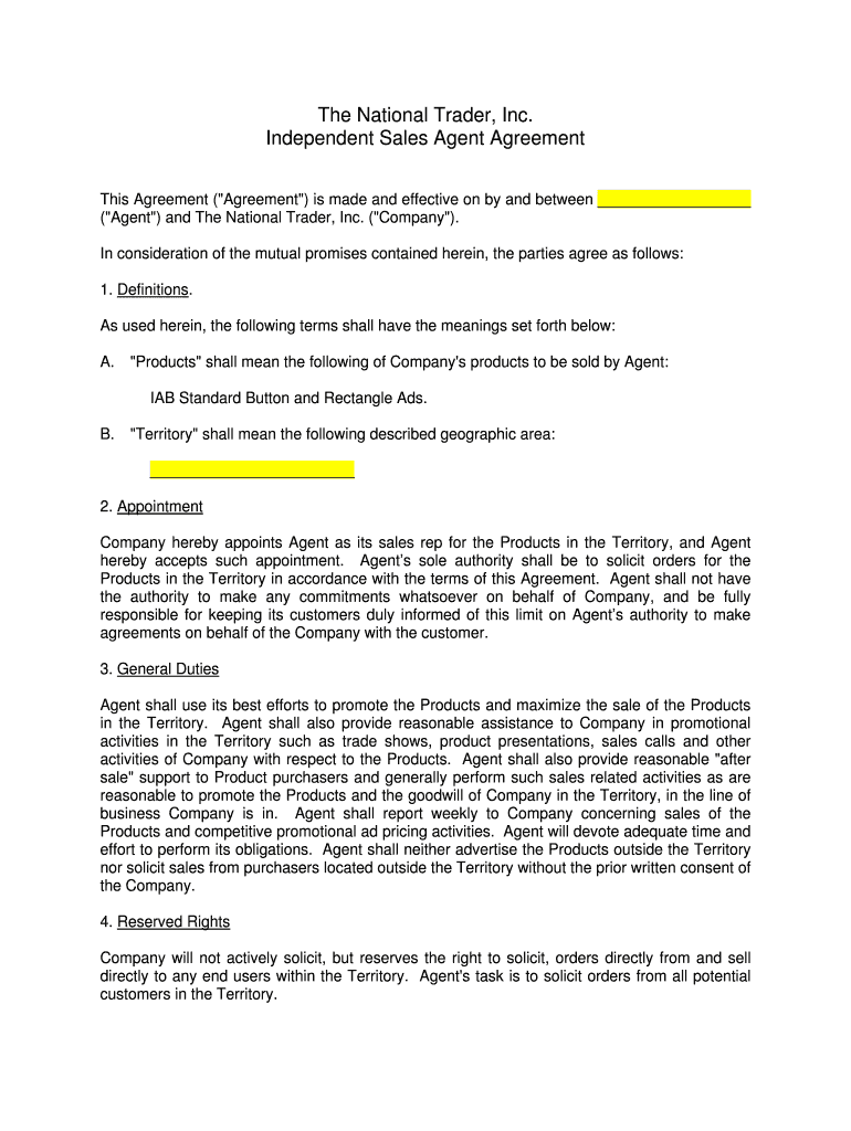 Get the free Sales Rep Agreement - nationaltrader