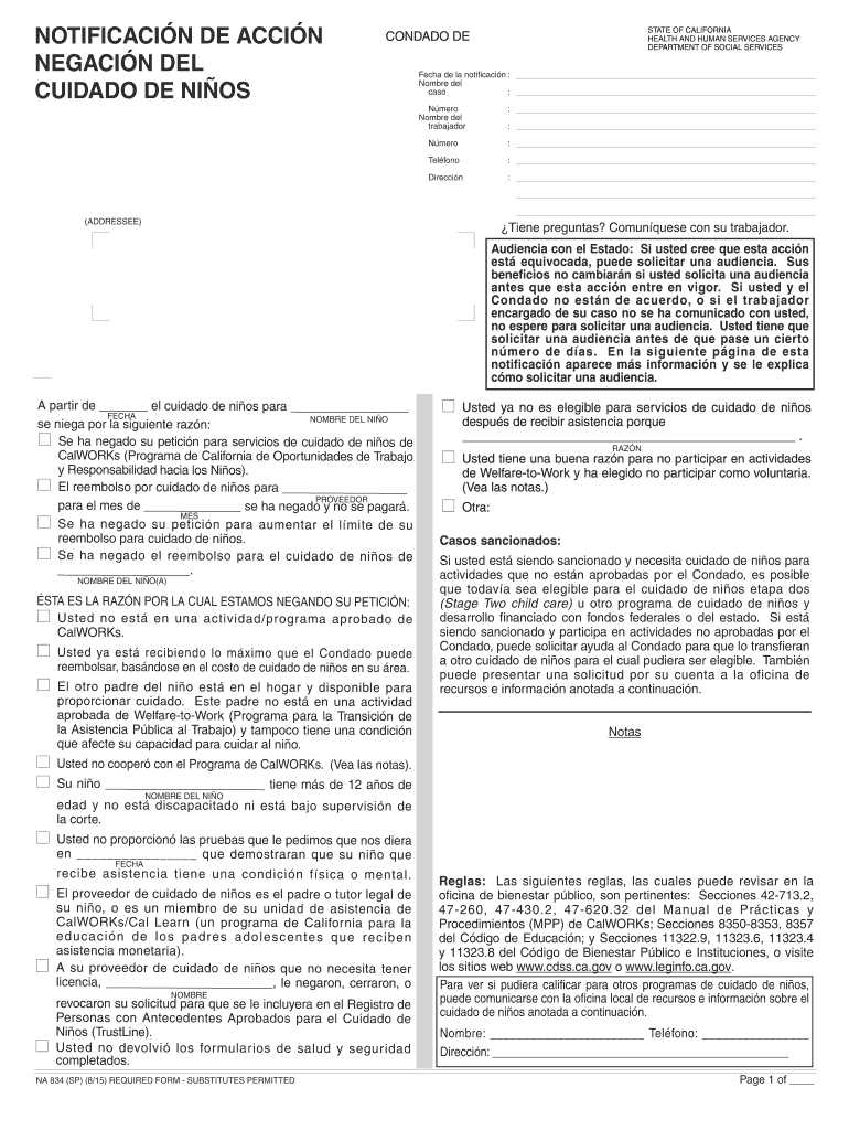 Get the free NA 834 SP - dss cahwnet