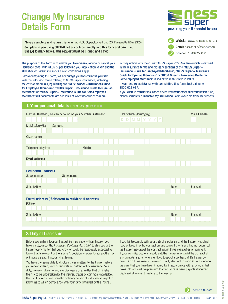 Get the free Change My Insurance Details Form - nesssuper.com.au