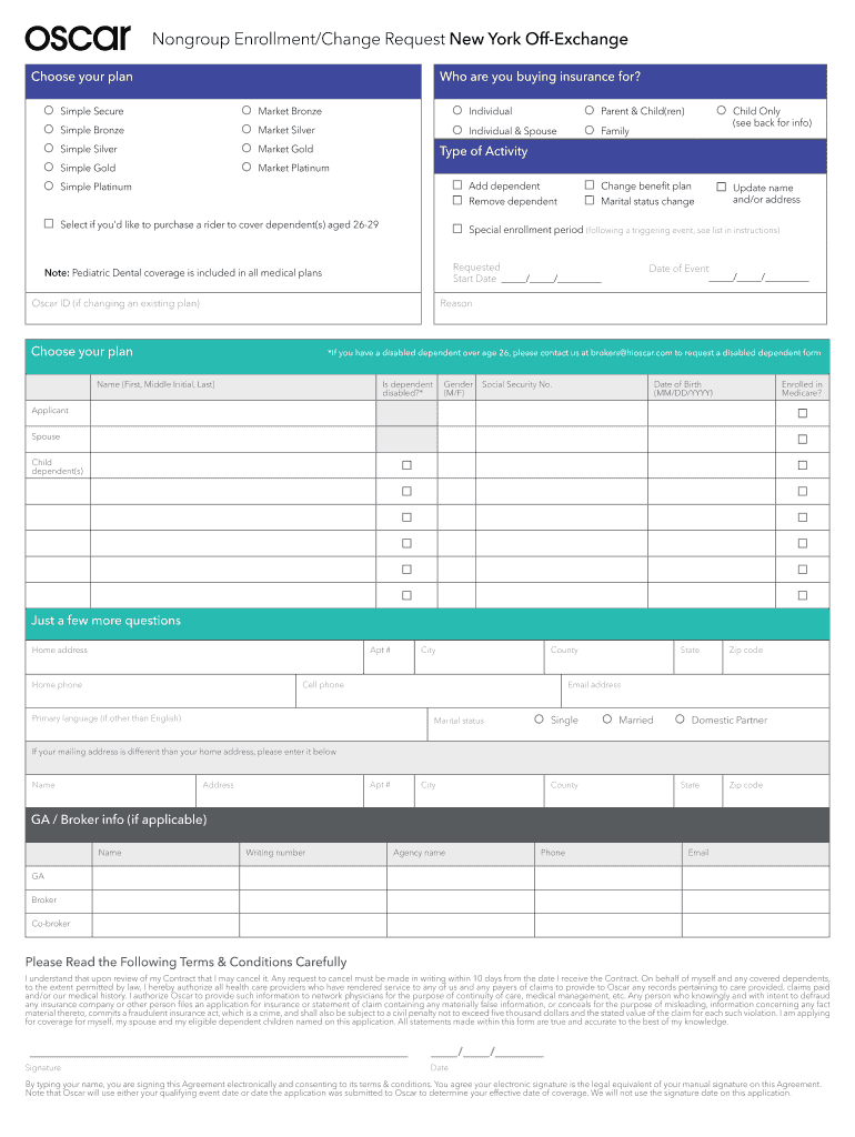 Get the free Nongroup Enrollment/Change Request New York Off-Exchange