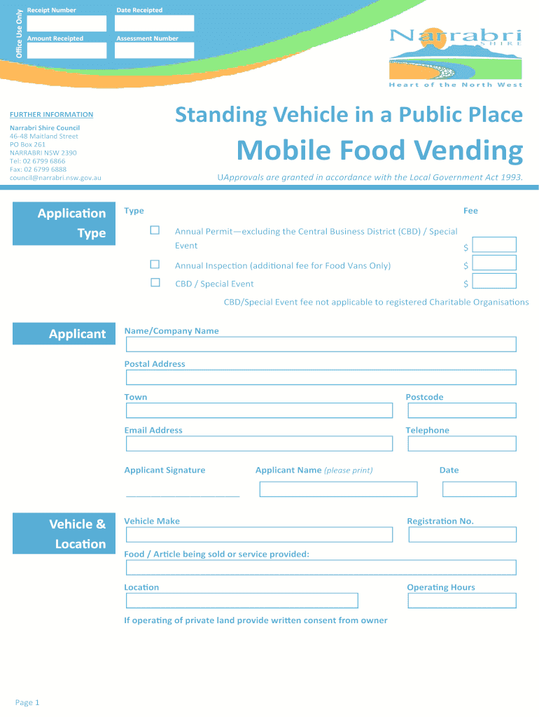 Get the free Standing Vehicle in a Public Place Mobile Food Vending