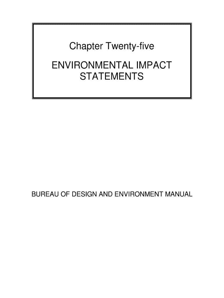 Chapter Twenty five ENVIRONMENTAL IMPACT STATEMENTS BUREAU OF DESIGN AND ENVIRONMENT MANUAL Illinois ENVIRONMENTAL IMPACT STATEMENTS August 2015 Chapter Twenty five ENVIRONMENTAL IMPACT STATEMENTS