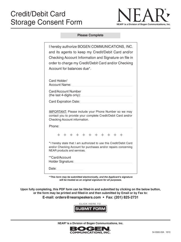 Near Credit Card Storage is not the form you're looking for?Search for another form here.