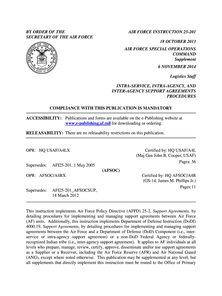 BY ORDER OF THE SECRETARY OF THE AIR FORCE INSTRUCTION 25201 18 OCTOBER 2013 AIR FORCE SPECIAL OPERATIONS COMMAND Supplement 6 NOVEMBER 2014 Logistics Staff IN-SERVICE, INTER-AGENCY, AND Inter-agency