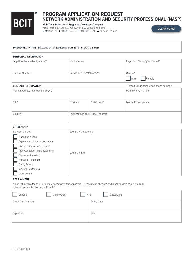 Get the free NASP Personal Information PDF - BCIT - bcit