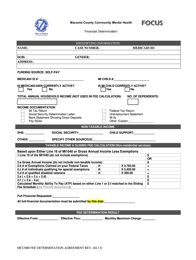Get the free IDENTIFYING INFORMATION NAME CASE NUMBER MEDICAID ID DOB - mccmh