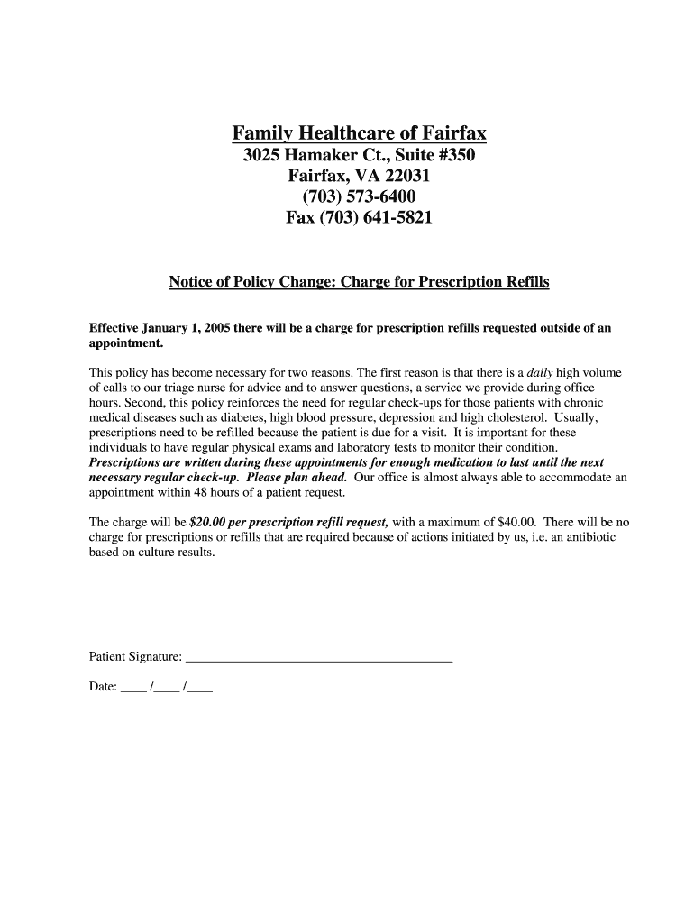 Get the free Notice of Policy Change: Charge for Prescription Refills