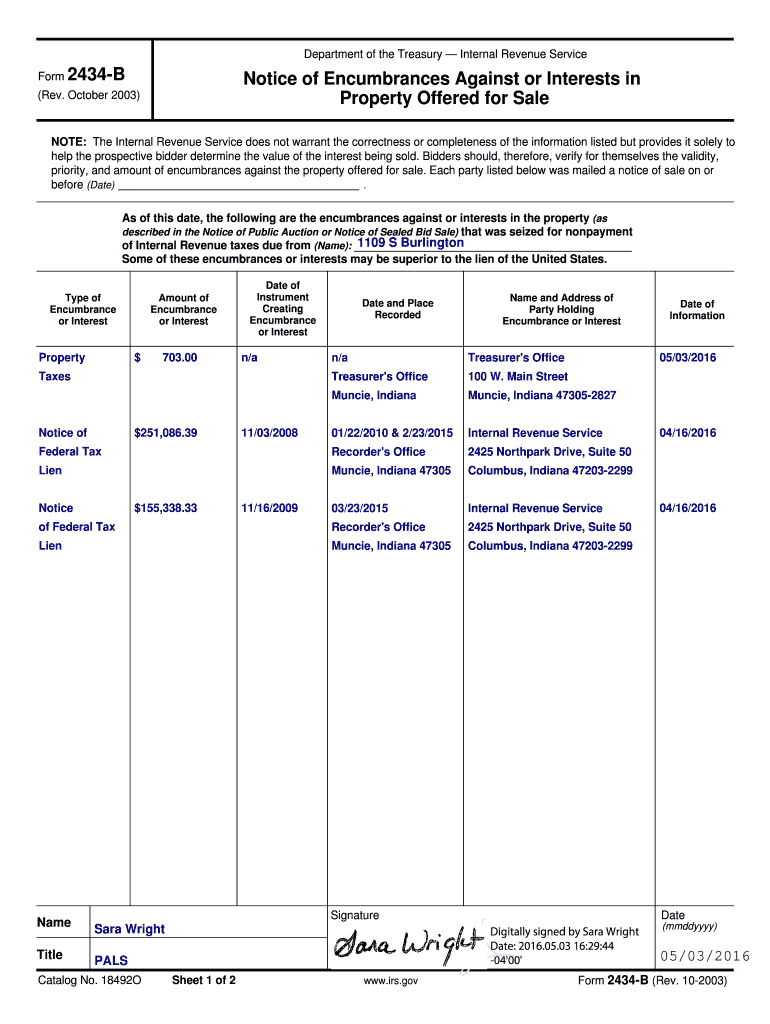 05/03/2016. Taxes ... Revenue Code states that a certificate of sale of personal property ... period, the Area Director shall, upon receipt of the certificate of.