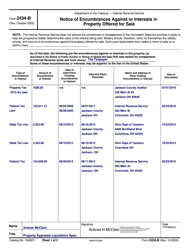 07/07/2016. 2015 tax year ... Revenue Code states that a certificate of sale of personal property ... period, the Area Director shall, upon receipt of the certificate of.