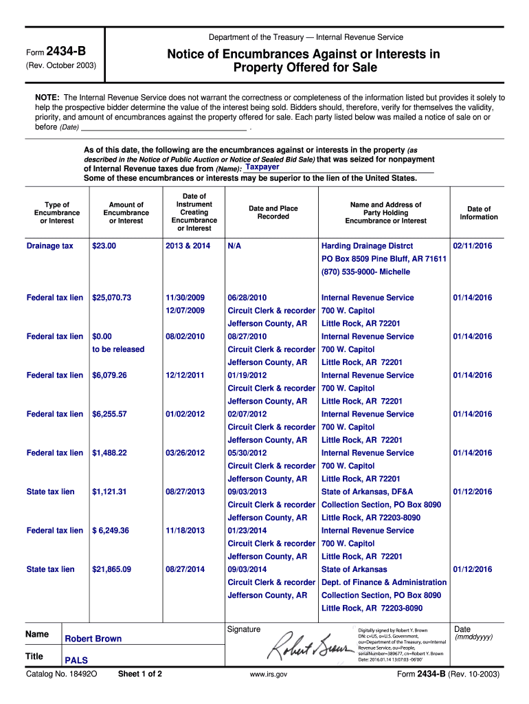 02/11/2016. PO Box 8509 ... Revenue Code states that a certificate of sale of personal property ... period, the Area Director shall, upon receipt of the certificate of.